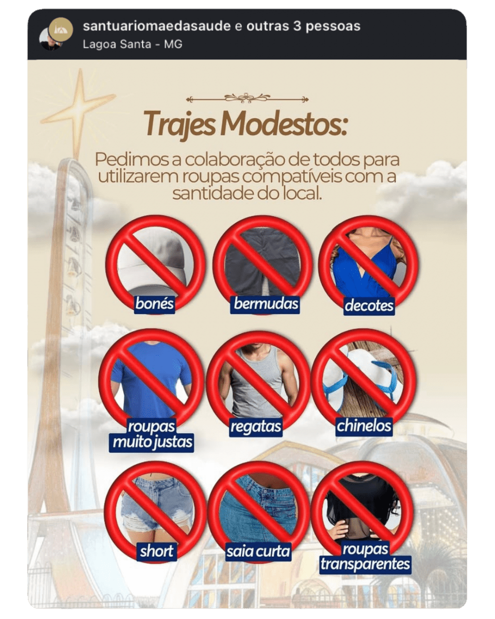 Queridos familiares e amigos, nossa cerimônia será realizada em uma igreja, um local sagrado e de grande significado para nós. Para que possamos celebrar esse momento especial com respeito, gostaríamos de compartilhar uma sugestão: roupas que evitem decotes profundos e sejam de comprimento adequado, seriam uma escolha apropriada para esse dia tão especial. Valorizamos a modéstia e a elegância, e ficaremos muito gratos se vocês puderem considerar essa sugestão ao escolherem seus trajes.